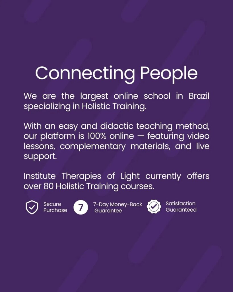 A complete training program with full support for those who want to fulfill their purpose — working by helping others and being well paid for it, earning extra income, or even helping someone close to you, someone you love and want to see well